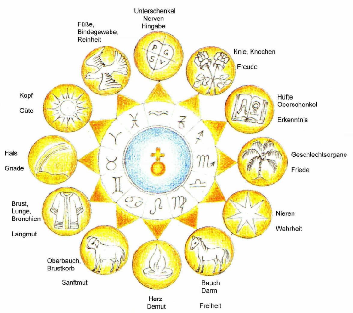 Zusammenhänge zwischen Tierkreis, Grundstrahlen und Körperbereichen